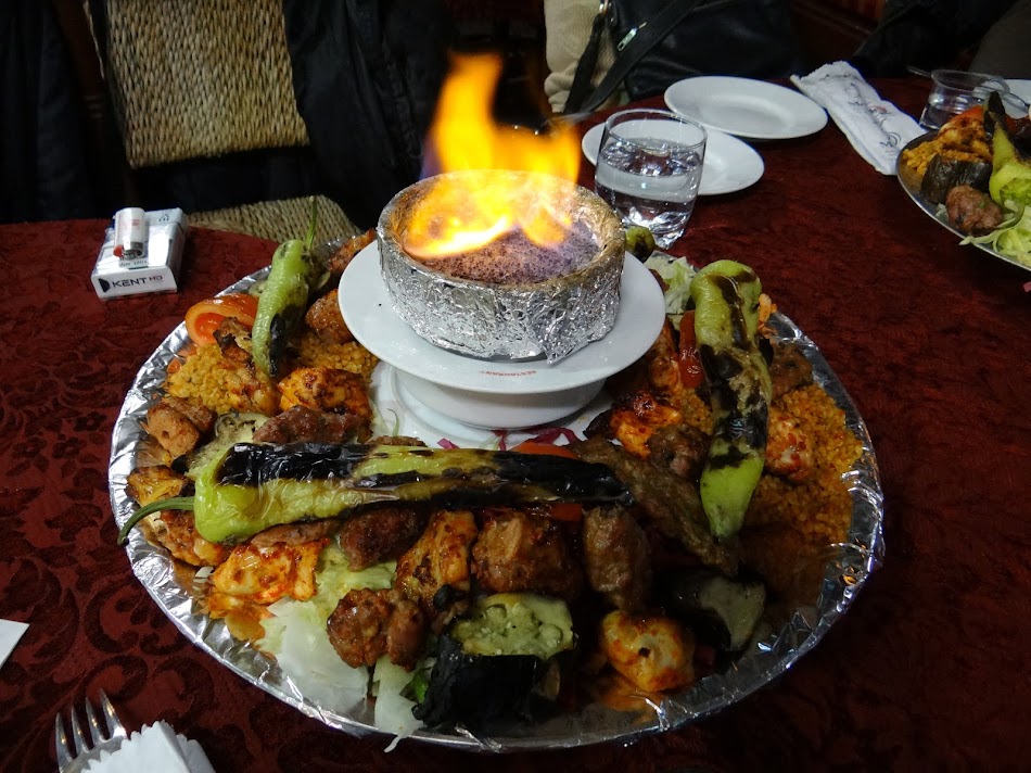 Si cum toata lumea era cam flamanda, am decis sa mancam in restaurantul din bazarul Arasta, bazarul adiacent Moscheii Albastre … unde am mancat evident mancare turceasca (bun labneh-ul si humusul, se pare ca partea mai carnivora n-ar fi fost la fel de buna), dar am avut parte de un scurt spectacol de sufi dancing, al dervisilor rotitori. Fain!