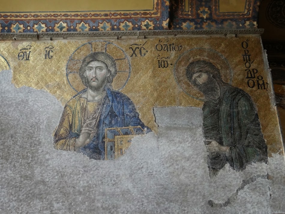Ies din nou la soare si ma intalnesc cu cei veniti de la Topkapi… Catedrala Sf. Sofia mai e deschisa pentru o ora si ceva si e musai s-o vizitez. Acum cateva luni, adjunctul lui Erdogan, prim-viceprim-ministrul Bulent Arinc, a spus „Ca ne uitam la o moschee Sofia trista, dar sper sa devina vesela din nou”, sugerand inchiderea muzeului si revenirea ei pe post de moschee. Evident, asta ar crea un scandal imens (ar fi un nou atentat la memoria lui Atatürk), dar si la nivel international. Dupa transformarea Sfintei Sofia in muzeu, numeroase mozaicuri redand sfinti crestini (inclusiv Isus) sau imparati bizantini au fost regasite sub tencuiala… Islamul interzice reprezentarea umana in religie, iar icoanele si picturile murale din Sfanta Sofia fie au fost distruse, fie au fost ascunse sub o tencuiala indepartata de arheologii secolului 20.