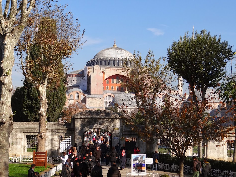 In acel moment, am decis sa ma deconectez de grup. Acesta dorea sa viziteze Muzeul Topkapi, fostul palat al sultanilor, si eu decisesem sa ma bucur de soarele neasteptat de stralucitor pentru un sfarsit de noiembrie si sa vizitez Cistern Basilica. In Topkapi am fost de trei ori in ultimul deceniu si am decis sa nu merg si a patra oara J. Asa ca m-am plimbat prin curtea de la Topkapi (pana la intrarea in palatul propriu-zis) si prin piata. Am fost realmente surprins sa aud cantecul muezinului la o intensitate maxima din mineretele Sfintei Sofia. Parca nu am mai auzit asta niciodata! Atatürk decisese ca Sfanta Sofia sa fie muzeu! Dar, la pranz, muezinul de la Moscheea Albastra canta ceva, iar cel de la Sfanta Sofia ii raspundea. Am pus mana pe net si am aflat – din 2013, vinerea, la principala rugaciune a saptamanii, dupa aproape un secol, minaretele din Sf. Sofia cheama credinciosii la rugaciune… Hm, inca un pas spre delaicizarea condamnata de revoltele de asta-vara si de miscarea #occupygezi?