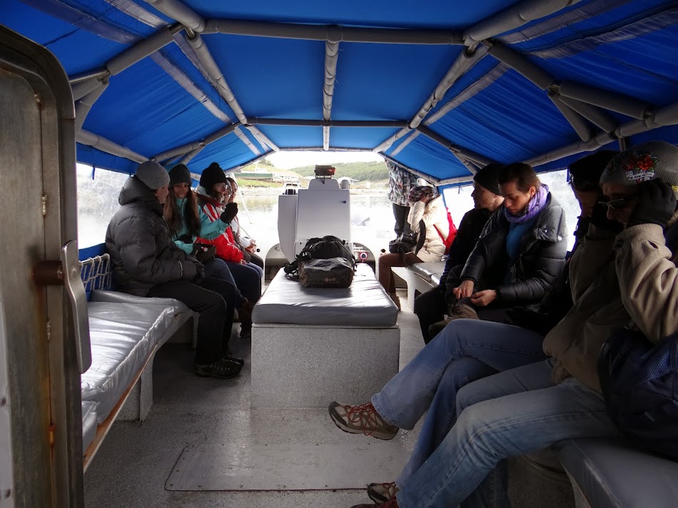 Nu am avut timp nici sa dau o fuga pana in oras ca venea ora imbarcarii spre insula H. De data asta, ne imbarcam direct din Ushuaia intr-un mic vas inchis. Pe vas, multi brazilieni (un cuplu mi-a spus ca urmeaza sa viziteze Romania la vara cand mergeau in Europa pentru luna de miere) si un cuplu italo-venezuelean, micuta venezueleana blonduta si cam piti, parandu-mi initial ca-mi era conationala. Nu era, era din Venezuela, o alta tara producatoare de fete frumoase.