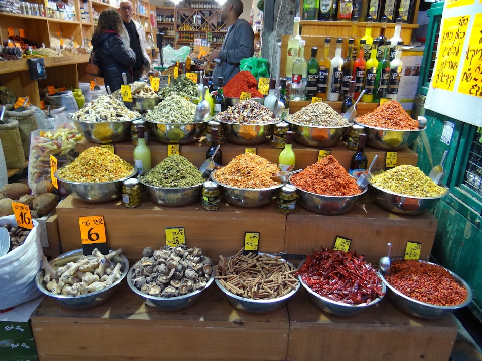 Evident ca prezentarea lor este spectaculoasa, urci prin niste camera in semiobscuritate unde poti afla despre convingerile esenienilor, dar si despre viata lor de zi cu zi pentru a ajunge in sala centrala unde se afla expuse o parte din aceste manuscrise (nu sunt expuse toate, mai sunt rotite pentru a nu fi prea afectate de expunere). Am iesit, aruncand o privire plina de pareri de rau spre Israel Museum si am taiat-o in oras. Urma sa vizitam piata Mahane Yehuda, principala piata a Ierusalimului de Vest, o piata cu vreo 250 de standuri, fondata pe la finele secolului 19, plina cu fructe, peste, carne, branza, nuci, mirodenii, dar si ceva haine.