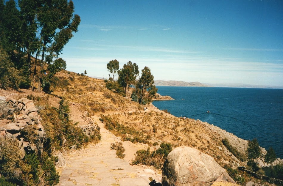 Stateam pe un deal care domina lacul Titicaca, unde se afla urmele unei civilizatii de dinainte de faimosii incasi. Ghidul se uita si el in departare spre lacul de o culoare albastra tulburatoare. “Acesta este lacul Titicaca, cel mai inalt lac din lume se afla la o altitudine de 4.000 de metri. Lacul este impartit intre doua tari – Peru si Bolivia. Titi e la noi, restul la bolivieni.” M-a bufnit rasul… Cu toate ca si unii, si altii sunt urmasii celor doua mari popoare amerindiene, quechua si aymara, granitele i-au separate… peruvienii sunt ceva mai bogati, asa ca ii privesc de sus pe mai amaratii bolivieni.
