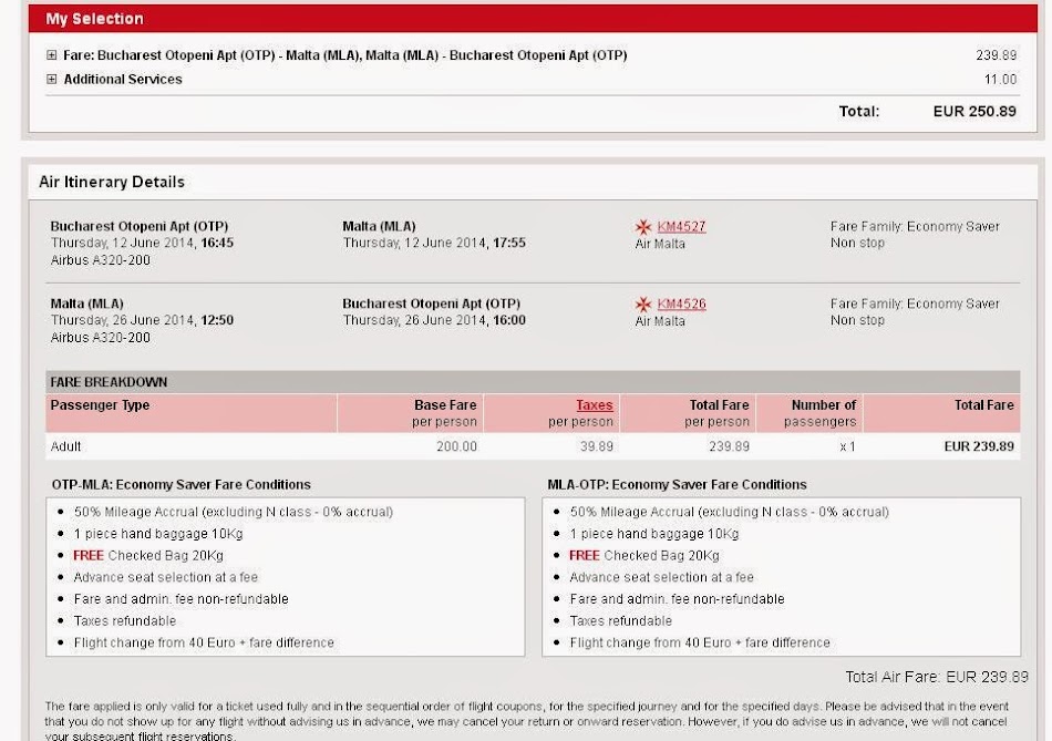 totusi cei de la airmalta au preturi maricele.. chiar sa fi fost doar ei pe piata, deci sa nu pot alege wizzairul, tot nu as fi mers cu airmalta- ca nu prea ma incalzeste nici mancarea in cele 2, 3 ore de zbor si nici bagajul de cala- oricum mergi vara si hainele suptiri nici nu ocupa mult loc si nici nu sunt grele…