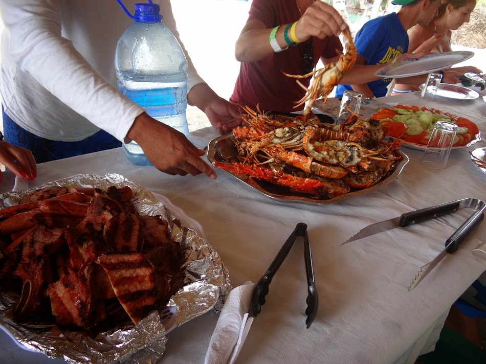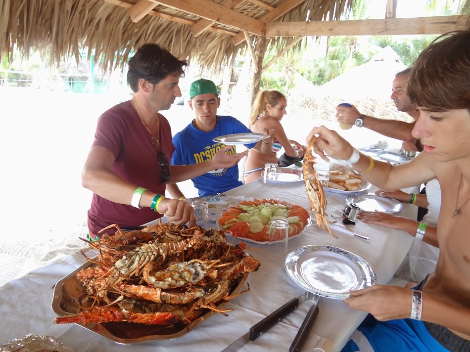 O alta faza notabila a fost la acel pranz rustic de pe plaja din insula Saona. Cei trei angajati ai lui Captain Gringo ne-au aranjat o masa superba sub palmieri, cu o gramada de bunatati (vedeta fiind homarul la gratar). Cum mancare si locuri erau destule, nu intelegeam de ce, dupa ce au terminat de aranjat masa, cei trei nu s-au asezat cu noi la masa (ci s-au restras la cativa pasi si asteptau). Nu mancau – nu aveau alta mancare –, ci doar asteptau. Cum mie imi era foarte foame, imi imaginez ca si lor le era cel putin la fel (eu macar mancasem ceva dimineata). Am insistat destul de mult sa vina si ei langa noi sa mancam impreuna (in Thailanda nici nu se putea altfel, barcagiii si ghizii mancau cot la cot cu turstii si se discuta si se glumea…). Insa aici nu a fost asa. La un moment dat, una dintre tipele din grup (care era si un fel de ghid freelancer, o poloneza care era de trei ani acolo) mi-a explicat ca nu are sens sa insist, ca asa sunt ei, ca asa e regula lor, nu stau la masa cu turistii, nu au voie. Si, intr-adevar, dupa ce noi am terminat si ne-am ridicat, eu venit si ei si au mancat ce a ramas de la noi…