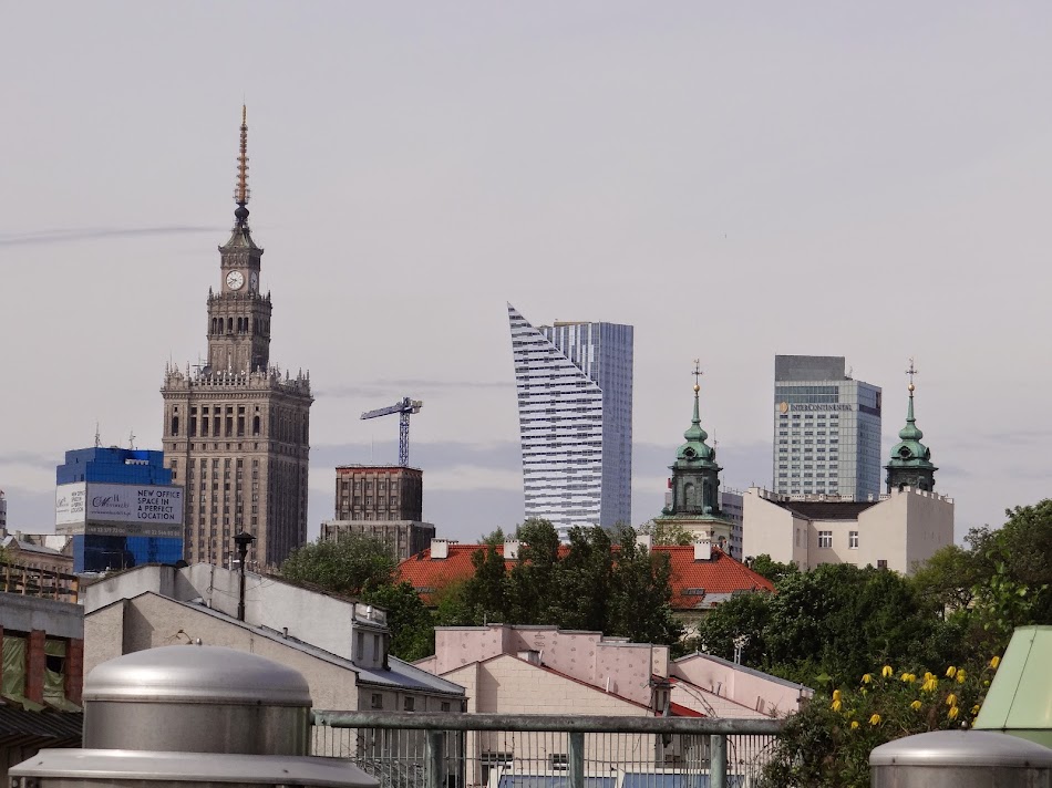 Ghida ne-a preluat de la Palatul Culturii si am luat-o pe jos spre asa-numita Cale Regala pe unde regele mergea spre Palatul Regal. Palatul Regal se afla la intrarea in Orasul Vechi, dar ghida a preferat sa bantuim prin alte zone, mai putin turistice. Asa ca am luat-o catinel spre biblioteca universitara, o cladire care mi-adus aminte de sediul British Airways din Londra, si chiar am urcat pe cladire unde se afla o adevarata gradina botanica, dar si o panorama a orasului… intr-o parte, zgarie-norii rasariti in centrul nou pentru a tine companie Palatului Culturii, de cealalta parte, Stadionul de fotbal, construit pentru campionatul european de fotbal de acum doi ani, Euro 2012 Polonia–Ucraina.