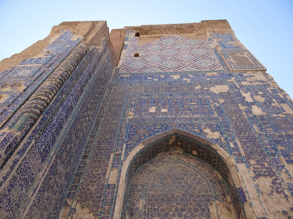 Ipoteza mea s-a confirmat partial exact in centru. Aici, se afla Ak-Saray, “Palatul Alb”, palatul de vara al lui Timur Lenk, ale carui magnifice ruine te lasa cu gura cascata… ruinele actuale au circa 22 de metri, dar se presupune ca la vremea lui Timur erau cel putin duble in inaltime… La Shahrisabz, Timur a adus cei mai buni arhitecti si constructori colectionati de prin tot Orientul pentru a crea cea mai incredibila cladire de pe fata pamantului… si, probabil, a reusit. Adevarul e ca, uitandu-ma la cladirile glazurate cu acea faiantaraie albastra incredibila, am ramas cu gura cascata… Incredibil!