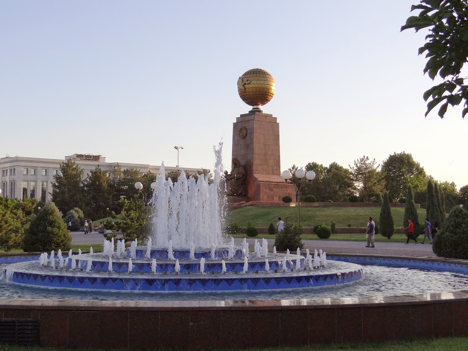 Dar in Piata Independentei trebuie sa fie si accente pozitive sau vesele… Cel mai inalt monument este un glob imens pe care este reprezentata harta putin cam contorsionata a Uzbekistanului – multumita tatucai Stalin… reprezinta noua tara independenta, iar globul inseamna dorinta uzbecilor de recunoastere internationala. A fost ridicat in 1992, imediat dupa obtinerea independentei, cand recunoasterea internationala era foarte importanta pentru orice stat din fosta URSS. De cealalta parte a codrilor plantati in piata, se afla un Arc al Independentei, ma rog, niste coloane din inox pe care se afla niste berze (sau cocori, nu mi-am dat exact seama), simbol al libertatii. Si pentru ca era musai sa fie si niste cladiri aici, Arcul Independentei se termina brusc in cladirea moderna a… Ministerului Finantelor (“Banii vorbesc, banii vorbesc”, vorba cantecului lui Holograf) si ceva mai intr-un colt (este interzis sa treci prin fata), cladirea destul de nefolositoare a Parlamentului (mi-e neclar la ce foloseste acest organism in Uzbekistan J).