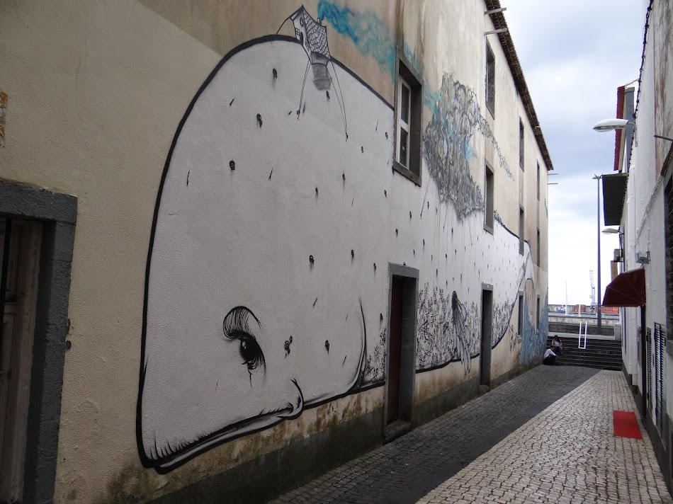 Am vizitat piata de legume (unde am vazut ananasul local), am trecut prin fata palatului prezidential, ne-am strecurat pe aleile inguste din centru… pe unul dintre pereti era pictata o balena… ei bine, ironia prinde, am vazut o balena in Azore. Pe ziduri, nu in Atlantic :).
