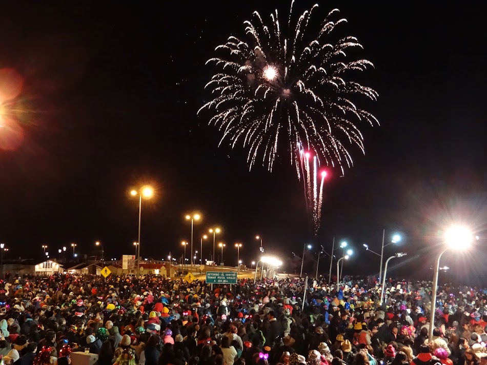 Revelionul l-am petrecut pe malul apei unde municipalitatea a organizat o mare petrecere, cu trupe locale si focuri de artificii. Initial ma intrebam daca nu voi asista la primul An Nou pe lumina (pe la ora 23:30, o buna parte din cer continua sa fie luminata), dar la Miezul Noptii fix era in sfarsit noapte. Atmosfera latina, iar toata lumea parea sa iubeasca luminitele… se purtau tot soiul de coronite si betisoare cu luminite…ziceai ca e un soi de carnaval de copii… Dar de Anul Nou e frumos sa cazi in mintea copiilor. Artificii? Da, au fost si au fost frumoase. Foarte frumoase, pe cerul instelat si atat de luminos al emisferei sudice.
