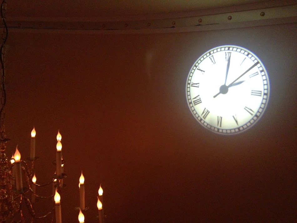 Un detaliu interesant: ceasul proiectat pe perete, deasupra scarii