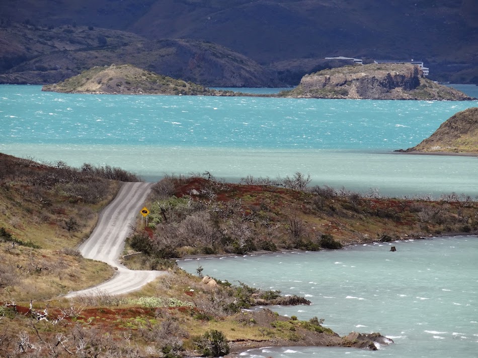 Intre timp, simpaticul nostru ghid incepuse sa ne povesteasca despre aceste formatiuni geologice stranii, cu ajutorul unei tablete (hei, Chile e o tara dezvoltata, ce credeati?), pana cand toti l-am lasat sa vorbeasca singur ca televizorul. A aparut un lac, un ochi de apa de un albastru turcoaz indescriptibil. Sincer, mi-este imposibil sa va povestesc acel albastru pentru ca … “you need to see it in order to believe it”. Evident ne-am oprit, era un gard urat care delimita ceva proprietate (cred ca cea mai mare industrie din Chile este cea de garduri, am vazut sute si sute de km de garduri), dar puteam vedea dincolo de gard, un lac de un albastru uimitor si in departare pe… TORRES DEL PAINE.