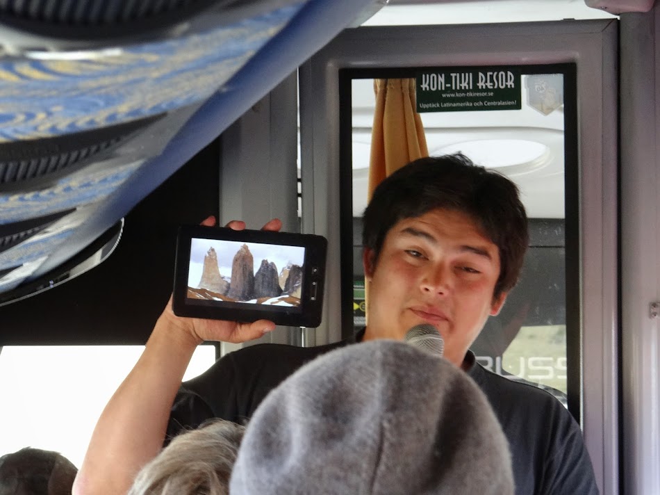 In drum spre parcul national Torres del Paine, ghidul ne povesteste una alta de pe o tableta