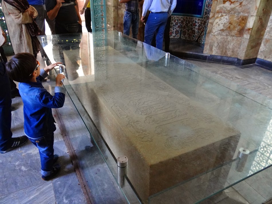 De aici, am ajuns la mausoleul lui Hafez. Sa nu credeti ca Hafez sau Sa’di sunt niste poeti cat de cat contemporani. Hafez a murit in 1390 (adica pe vremea lui Mircea cel Batran), iar Sa’di inca si mai demult, in 1292. Mormintele actuale sunt insa de data recenta (adica de vreo 100 si ceva ani, cand sahii Qajari s-au ocupat sa le perpetueze memoria… Mormantul lui Hafez se afla intr-o gradina frumoasa, iar noaptea, cand gradina este inundata de lumina, iar din difuzoare se aud gazelurile lui Hafez, locul devine cu adevarat magic. L-am experimentat in 2009, am incercat sa vin aici seara si acuma, dar n-am avut cand. Si mi-a parut rau, dar cele doua seri din Shiraz au fost cu adevarat memorabile… in prima seara, spectacolul covoarelor, a doua seara… sa nu anticipez J.