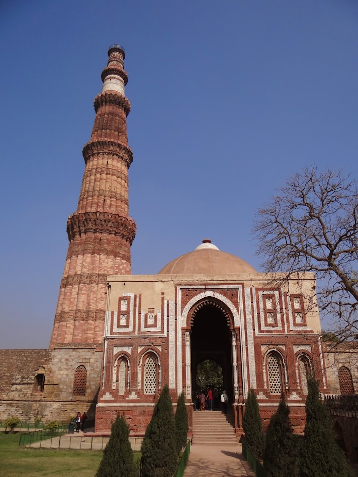 Qutb Minar este numele unui minaret impresionant… nu neapărat prin înălțime, cât prin frumusețea dantelăriilor care îl împodobesc. Este o plăcere! Qutb Minar vine de demult, din istorie, construcția lui fiind începută de primul sultan de Delhi, primul năvălitor care a adus religia islamică pe tărâm indian. Qutb ud bin Aibak a fost unul din lista lungă de cuceritori care s-au rostogolit spre subcontinentul indian din Asia Centrală, după ce a traversat Hindukush-ul prin faimosul Khyber Pass. El este primul mare cuceritor musulman (al doilea a fost Babur, fondatorul Imperiului Marilor Moguli) și a domnit din 1206 în 1210. Cucerind niște state hinduse, aducător de o religie nouă, a dorit, evident, să-și impresioneze supușii, așa că a dat ordin să construiască o moschee care să eclipseze orice templu hindus cunoscut. Și, cum în zona vechiului oraș hindus erau destule coloane și clădiri taman bune de refolosit, cea mai mare moschee a Indiei urma să fie construită pe ruinele vechiului oraș folosind materialele din 27 de temple hinduse (cum, de altfel, susține o inscripție contemporană), iar această moschee urma să aibă cel mai înalt turn din tot subcontinentul. Și așa a ieșit minaretul, care are 72 de metri; este cu adevărat impresionant, chiar și în ziua de azi. Până în 1981, te puteai urca până sus, dar într-o zi de vineri a picat curentul, iar în turn se aflau numeroși copii (vinerea era ziua când elevii puteau intra gratuit la diverse monumente istorice). În haosul care a urmat, în întuneric, au murit nu mai puțin de 45 de oameni, majoritatea, copii. De atunci, accesul în turn a fost interzis.