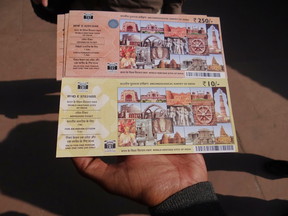 Bilete de intrare pentru Qutb Minar. Pentru indieni – 10 rupee. Pentru straini – 250 rupee (3,5 euro)