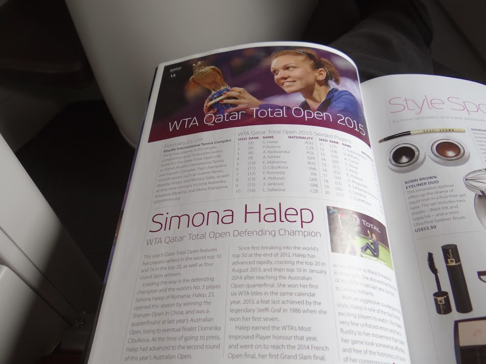Cabina business era gândită din capul locului extrem de aerisită. Sincer, din capul locului nici nu ai simțit că te afli într-un avion, un spațiu, în esență, complet închis. Era atât de aerisit, iar jocul de culori făcut din luminile avionului îmi dădeau senzația că mă aflu într-o navetă Star Trek. Patul – lung, loc gârlă, reviste, până și un buchet de flori. Arăta ca un private jet din filme. Evident, am trecut și de cortină, dincolo în economy class (cred că am fost singurul). A trebuit să văd și cum arăta economy. Are o configurație originală – 3 + 3 + 3. De obicei, configurațiile sunt 2 – 4 – 2 sau 3 – 4 – 3, niciodată nu am mai văzut 3 – 3 – 3. În schimb, scaunele mi s-au părut mai late. E și normal, într-un avion de lățimea Dreamlinerului, la economy intră cam 10 scaune pe rând, la Dreamlinerul lui Qatar Airways – 9. Așa că, deodată, câștigi câțiva centimetri la lățimea scaunului. Și asta face o diferență serioasă, mai ales când zbori ore și ore.