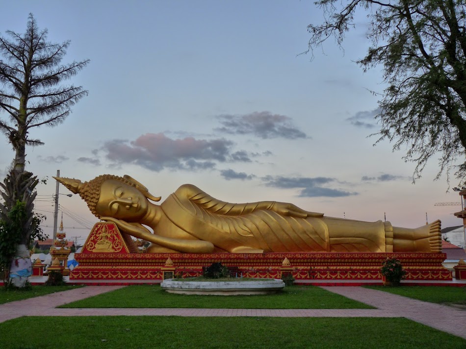 Ajungem în Vientiane. Mi se pare că nu văd bine! Un semafor??? Uau! Orașul este destul de mare și are o grămadă de temple. Foarte frumoase, de altfel, dar toate la fel. Mergeți la apus la Stupa și zăriți statuia lui Buddha culcat (este în dreapta cum vii spre Stupa, în curtea din spate a templului). Lumina reflectată în statuile aurite vă va da niște poze fantastice. În afară de obiectivele din jurul Palatului Prezidențial am fost o jumate de zi la Buddha Park, până la care, deși este la 30 km distanță, faci până acolo cam 2 ore. Merită, mai ales dacă ai deja mașină închiriată. Era duminică și am văzut cum toată lumea din satele de pe traseu ieșise la curățenie pe marginea drumului: se tundeau pomii și se strângeau gunoaiele, se ardeau frunzele uscate… Erau “cu mic, cu mare”, un exemplu extraordinar pentru cei mici să învețe ce înseamnă comunitatea și spiritul civic. Acum nu știu cum priveau ei lucrurile, poate că erau obligați de către “Partid”, făcându-se educație cu forța.