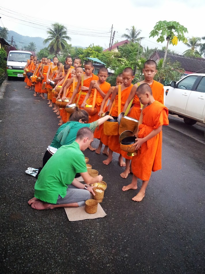 Una peste alta, încheiem Luang Prabang cu o experiență magică: Alms giving ceremony. Citisem că unele hoteluri sunt încântate dacă vrei să participi în mod direct. Ne-au pregătit orezul într-un vas, iar în altul aveam un fel de biscuiți. Trebuia ca pentru fiecare călugăr să iei cu aceeași mână puțin orez și un biscuite. Tehnic, nu a fost ușor deloc, mai ales că orezul era foarte fierbinte și trebuie să ai grijă să îl împarți în așa fel încât să ajungă pentru toți cei care trec. Deși am drămuit destul de bine orezul cu biscuiții, ultimii patru au rămas fără; norocul a fost că “vecina” avea mai mult orez și au primit de la ea. Nu pot să descriu emoția momentului… a fost fantastic. Dacă ar fi să existe un “Top Not to be missed experiences”, cu siguranță ar fi pe un loc fruntaș.