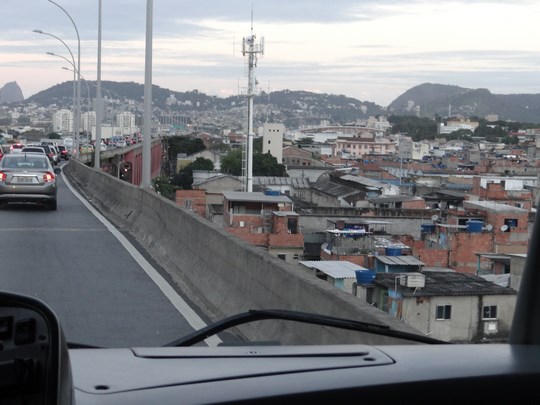 Soseaua de la Petropolis spre Rio de Janeiro. Favele sub autostrada zburatoare