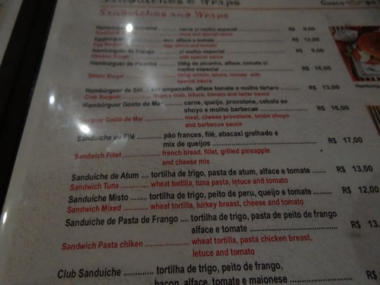 Preturile nu sunt chiar ingrozitoare desi suntem fix pe Copacabana (1 euro = 3,4 reali)