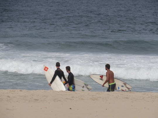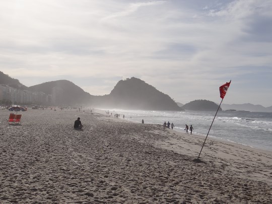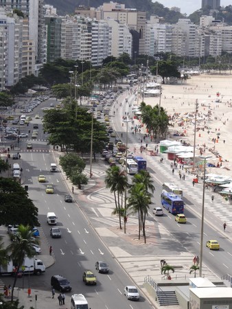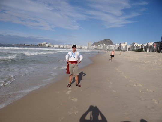 M-am trezit mai devreme decat trebuia. Dorinta de a descoperi Rio era mai puternica decat piticul care ma indemna la somn. Am urcat fuguta mare pentru a admira panorama Copacabanai… Este unul dintre acele momente. Si chiar mi-am aruncat orice urma de frica, am coborat urgent cu toate armele foto-video din dotare si am alergat pe Copacabana. Am citit peste tot ca pe Copacabana mergi cu doar 10 dolari in buzunar. Nu conta. Am alergat pana pe malul apei. Mi-am bagat piciorul in Atlantic. Ups, e rece. Am uitat, luna mai e noiembrie in emisfera sudica, unde e Rio. Niste negri desfac sezlonguri. Apare un nene, cu un copil, plimbandu-se pe plaja. Ei, asta nu o fugi cu aparatul meu foto. Il rog sa-mi faca o poza. Se executa. Dintr-odata, simt ca nu trebuie sa-mi mai fie frica. Doar sa fiu atent.