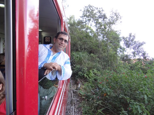 Vreo jumatate de ora mai tarziu, dupa micul dejun mancat in viteza, suntem in autocar in drum spre statuia lui Isus Mantuitorul. Statuia se afla pe lista celor 7 noi minuni ale lumii. Le-am vazut pe celelalte 6, asta e ultima din “minunile noi”, pe care nu am vazut-o. Celelalte sunt: Marele Zid Chinezesc (corect, jos palaria !), Petra (absolut de acord), Machu Picchu (votez cu ambele maini), Chichen Itza (da, sa zicem), Taj Mahal (da, da, da), Colosseum (n-as zice) si, in fine, urma sa ajung la ultimul. Pentru a ajunge la statuia cocotata pe varful Corcovado, marea majoritate a turistilor recurge la un tren montan care urca, incet-incet, prin padurea Tijuca. Rio este un adevarat spectacol al naturii – blocurile si casele se strecoara printre dealuri plesuve si paduri tropicale care continua sa vietuiasca in mijlocul orasului. Cand vine trenul, dam navala sa luam locurile recomandate de ghid (pe partea dreapta, cum urci) si o pornim la drum. Initial, imi aduc aminte de trenul din Hong Kong, dar imediat il dau uitarii… nu urcam pe varf prin jungla urbana, ci chiar printr-o jungla autentica. Motivul pentru care ghidul ne-a pus pe partea asta a durat fix cateva zeci de secunde… cat sa pot admira plaja Ipanema si, mai ales, lacul Rodrigo de Freitas (aici se vor desfasura competitiile de canotaj si caiac-canoe la Olimpiada de la anul).